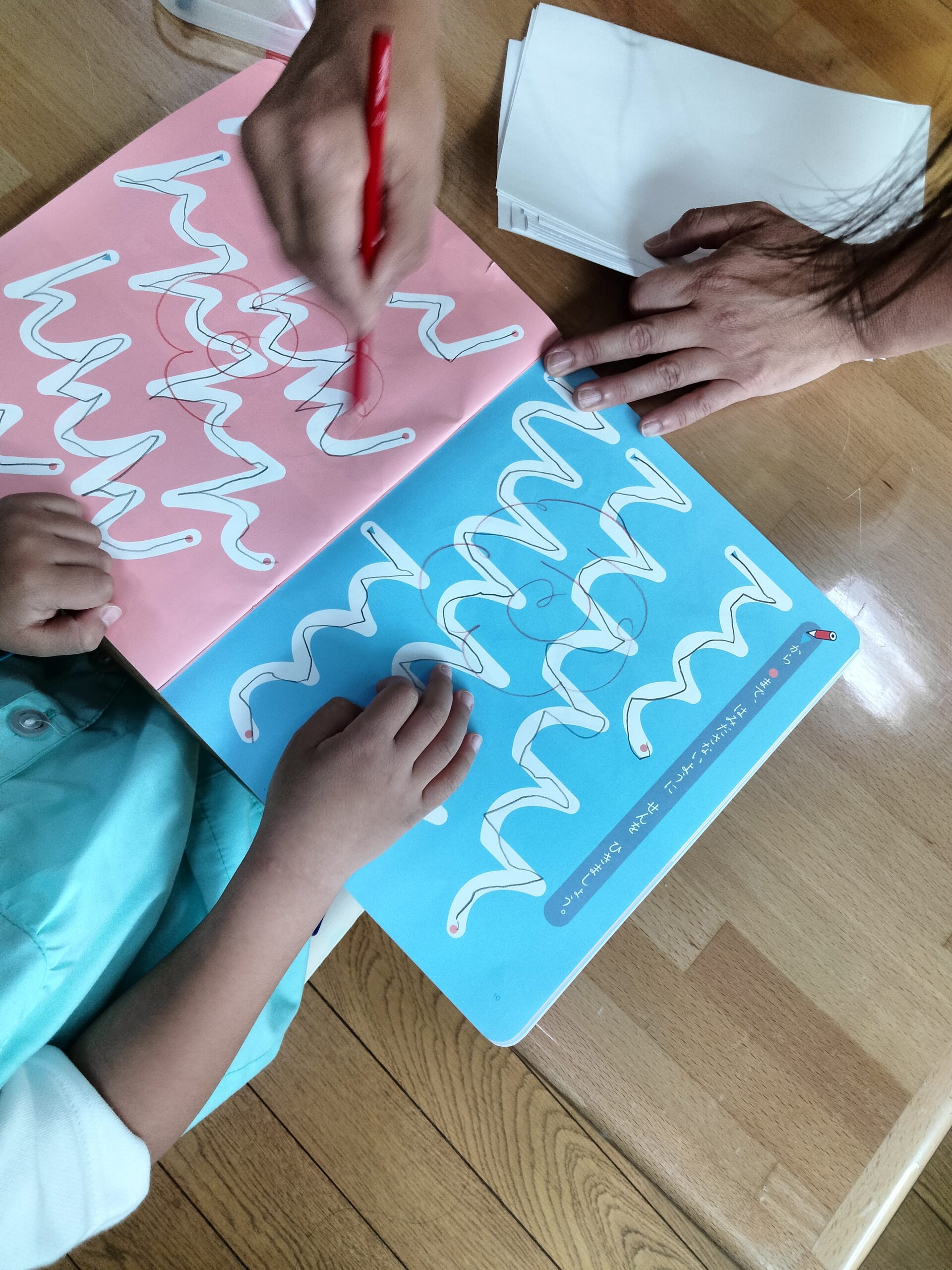 この日は年中さんがひらがなの練習で一生懸命に線を書いていました✍